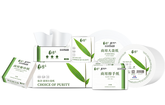 取舍产品系列主要有本色系列和青白系列,专为高端商务特通渠道服务。旗下有抽纸、卷纸、大盘纸、擦手纸等品类产品。本色系列采用100%天然原生竹浆,经过450度超高温处理。洁净卫生,柔韧抑菌,无添加,无漂白,包装精美大气,韵味深远,带给您前所未有的非凡享受。